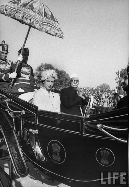 Previous Image Next Image Queen Elizabeth II riding in carriage with Indian Pres. Rajendra Prasad during her state visit 1961